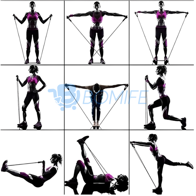 👉 Mais de 30 combinações diferentes de carga, usando 1, 2, 3, 4 ou 5 elásticos ao mesmo tempo.